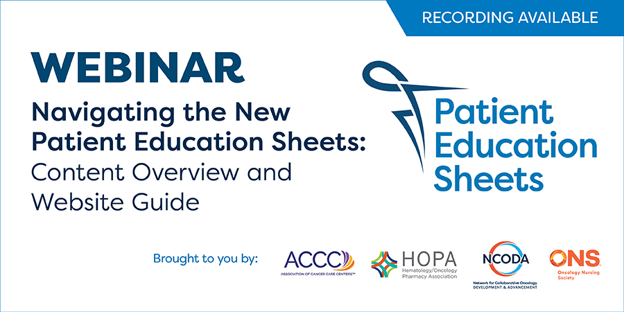 This event is brought to you by ACCC, HOPA, NCODA, and ONS. Don’t miss this opportunity to explore the new patient education tools and get practical guidance on using the website effectively.